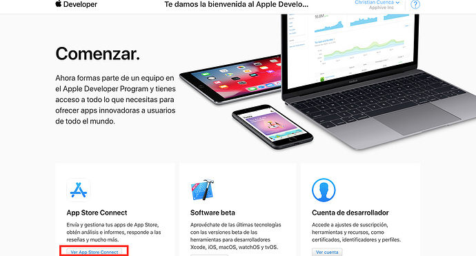 4.- At the end of the developer account registration process, you will enter the following page where you must click on see App Store Connect.