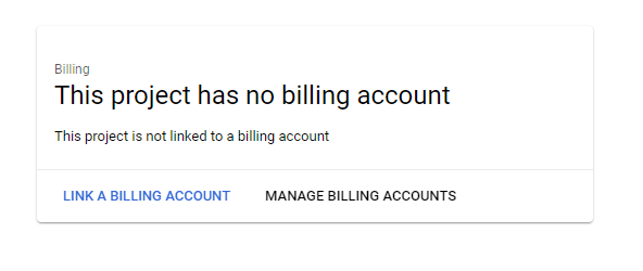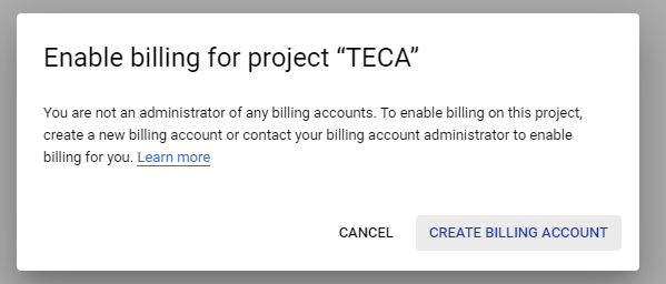 Step 11: If you don't have a billing account, you will see an alert indicating that you need to create one to associate it with your project. Click on "Create billing account".