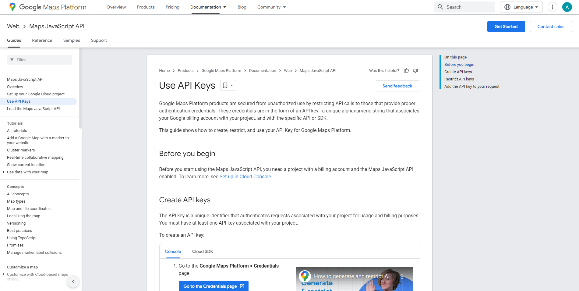 step 1 : Access Google Maps Platform at: <https://developers.google.com/maps/documentation/javascript/get-api-key>