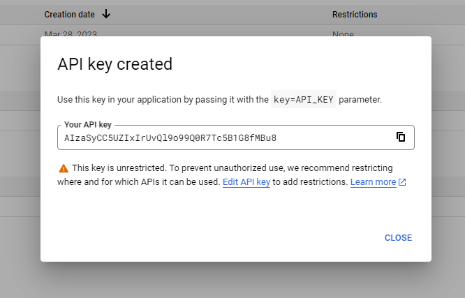 Step 19: Our API key will be generated and we must copy it to later paste it in our Apphive app dashboard.