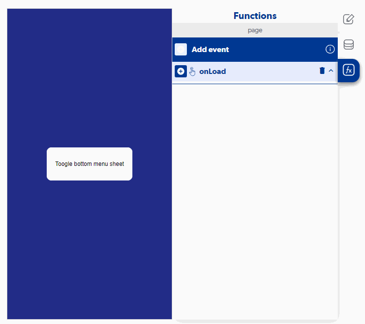 **Bottom menu sheet opened :** It is executed once the bottom menu sheet control is opened..
